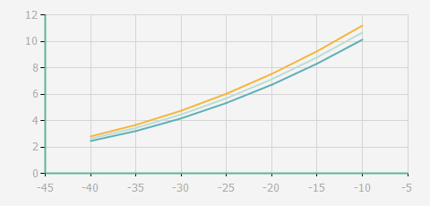 | 蒸發(fā)溫度 | 制冷量+/-5% | 能耗+/-5% | 現(xiàn)在能效+/-5% | 氣體流速+/-5% | 能效+/-7% | ||||